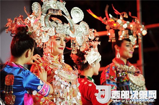 7月2日晚,在貴州省黔東南苗族侗族自治州丹寨縣,一場(chǎng)以苗族婚禮、苗族服飾為主的服飾秀在萬達(dá)小鎮(zhèn)舉行。中國以及來自喀麥隆、巴西、墨西哥、荷蘭等國的模特,集中展示民族服飾元素設(shè)計(jì)作品。新華社發(fā)(楊文斌 攝)