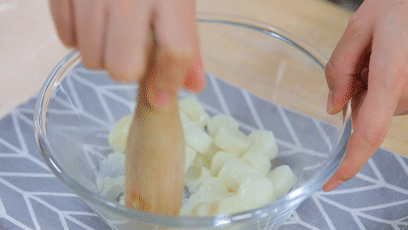 4.山藥塊搗成泥狀。
