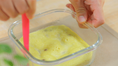 8.模具底部刷 油,鋪一層油紙。 家里如果沒有模具,就拿一個耐高溫的玻璃蒸碗吧!