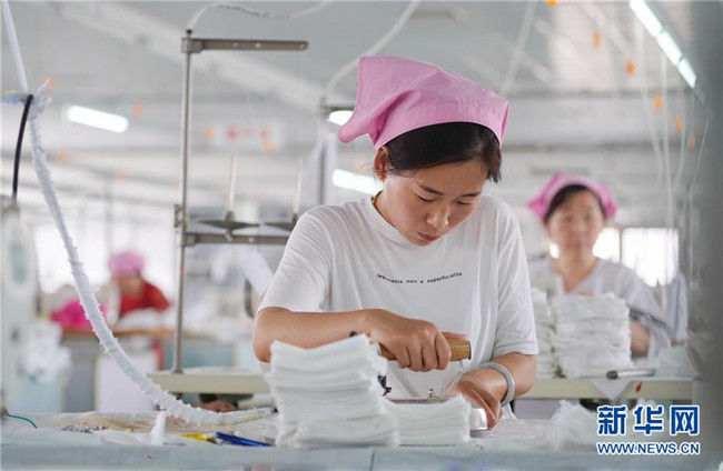 河北省鹽山縣在充分發(fā)揮自身交通區(qū)位優(yōu)勢的同時加強(qiáng)勞動技能培訓(xùn),積極承接雄安新區(qū)產(chǎn)業(yè)轉(zhuǎn)型升級項(xiàng)目,鼓勵勞動密集型無污染企業(yè)進(jìn)村辦廠,目前已吸納勞動力1.7萬人,人均年增收2萬多元。 新華社發(fā)(傅新春 攝)