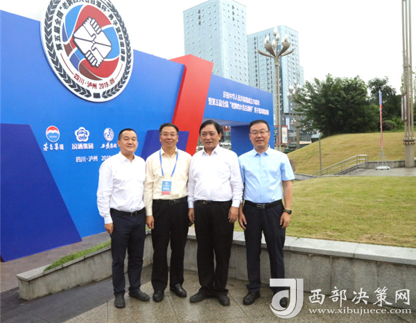 貴州茅臺酒廠(集團)有限責(zé)任公司黨委書記、董事長李保芳(左二)山西杏花村汾酒集團有限責(zé)任公司黨委書記、董事長李秋喜(右二)陜西西鳳酒廠集團有限公司黨委書記、董事長張正(右一)瀘州老窖股份有限公司黨委書記、董事長劉淼(左一)合影