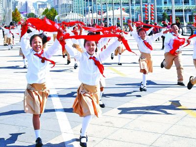 原標(biāo)題:圖片新聞:飛揚(yáng)紅領(lǐng)巾獻(xiàn)禮新時(shí)代