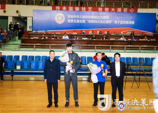 9月19日晚,由貴州茅臺(tái)酒廠(集團(tuán))有限責(zé)任公司、山西杏花村汾酒集團(tuán)有限責(zé)任公司、陜西西鳳酒廠集團(tuán)有限公司與瀘州老窖股份有限公司共同主辦,瀘州老窖股份有限公司承辦的慶祝中華人民共和國(guó)成立70周年暨第五屆“老牌四大名白酒杯”男子籃球邀請(qǐng)賽(以下簡(jiǎn)稱“男籃邀請(qǐng)賽”)在酒城瀘州奧林匹克體育公園圓滿閉幕。貴州茅臺(tái)酒股份有限公司監(jiān)事會(huì)主席羅國(guó)慶,山西杏花村汾酒集團(tuán)有限責(zé)任公司黨委委員、董事、工會(huì)主席李明強(qiáng),陜西西鳳酒廠集團(tuán)有限公司工會(huì)主席陳軍紅,瀘州老窖股份有限公司黨委副書記、總經(jīng)理林鋒及黨委副書記、紀(jì)委書記、工會(huì)主席江域會(huì),信息總監(jiān)蘇王輝等領(lǐng)導(dǎo)和嘉賓出席了閉幕式。