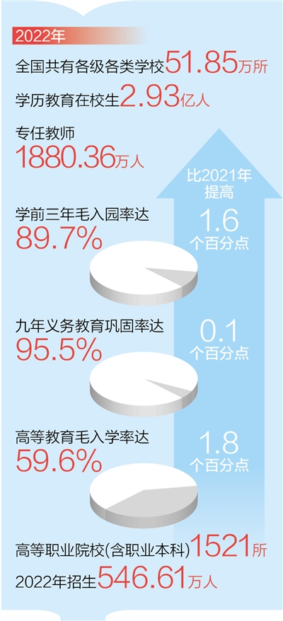 原標(biāo)題:2022年教育事業(yè)成績(jī)單公布,各級(jí)各類教育均取得顯著進(jìn)展