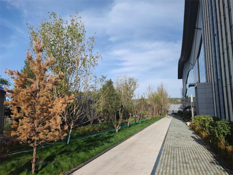 本次景觀提升工程主要對(duì)職工餐廳、文體中心北側(cè)的破損場(chǎng)地進(jìn)行了破除,對(duì)地平進(jìn)行修整后,重新種植了白皮松、叢生五角楓、白蠟、紅瑞木、水蠟等苗木。在留出人行通道的基礎(chǔ)上,設(shè)計(jì)了塑膠跑道,其余部分鋪設(shè)了草坪,并對(duì)區(qū)域圍墻進(jìn)行了修護(hù)??紤]到職工鍛煉休閑的實(shí)際需求,本次景觀提升工程還新安裝了一座公共廁所,設(shè)置了專(zhuān)門(mén)的吸煙區(qū)。