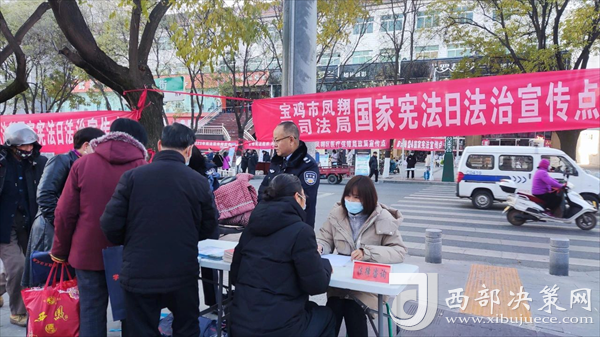 西部決策網(wǎng)訊(記者劉玉 韓宗憲)12月4日上午,寶雞市鳳翔區(qū)委普法辦、區(qū)司法局組織區(qū)級(jí)各部門、各企事業(yè)單位在城區(qū)主街道開展了以“大力弘揚(yáng)憲法精神,建設(shè)社會(huì)主義法治文化”為主題的國(guó)家憲法日集中宣傳活動(dòng),鳳翔區(qū)人大常委會(huì)副主任、總工會(huì)主席王曉鋒,副區(qū)長(zhǎng)李忠,政協(xié)副主席王紅玲以及區(qū)司法局主要負(fù)責(zé)同志檢查指導(dǎo)宣傳活動(dòng)。