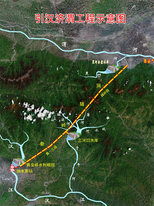 引漢濟(jì)渭秦嶺隧洞線路示意圖。圖片來(lái)自中鐵第一勘察設(shè)計(jì)院