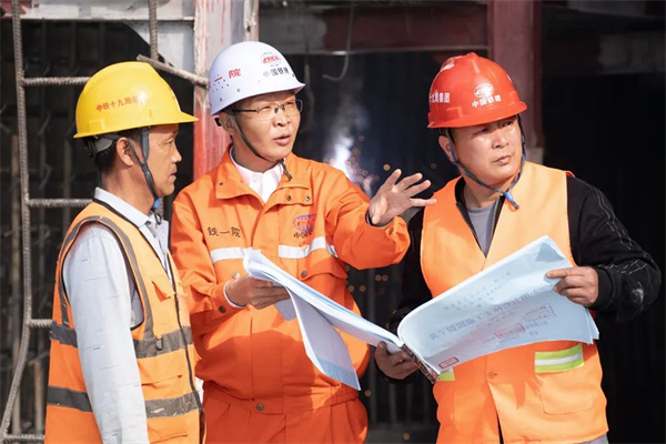 李凌志(中)和引漢濟(jì)渭團(tuán)隊(duì)在工地現(xiàn)場(chǎng)。圖片來(lái)自中鐵第一勘察設(shè)計(jì)院