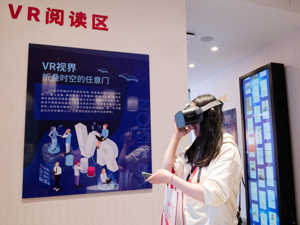 市民在云南省昭通市一家書店體驗(yàn)VR閱讀。新華社記者 高詠薇 攝